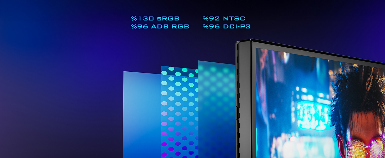 With 130% sRGB, 93% NTSC, 97% Adobe RGB, and 96% DCI-P3 support, experience exceptional color accuracy.
